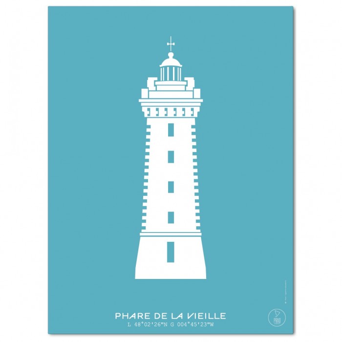 Affiche du phare de la Vieille en Bretagne, créée avec le style minimaliste et moderne du Prao Studio. Imprimée en 30x40 à La Rochelle et disponible en deux couleurs.