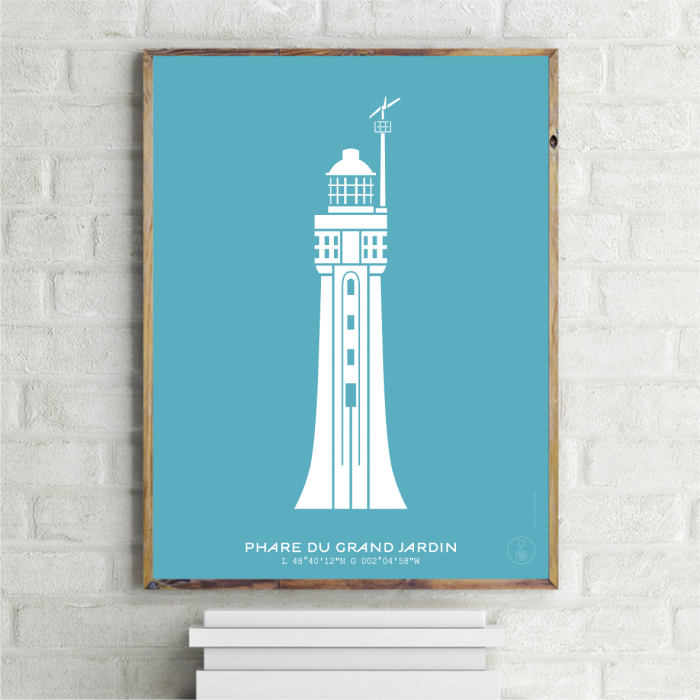 Affiche du Phare du Grand Jardin, créée avec le style minimaliste et moderne du Prao Studio. Imprimée en 30x40 à La Rochelle et disponible en deux couleurs.