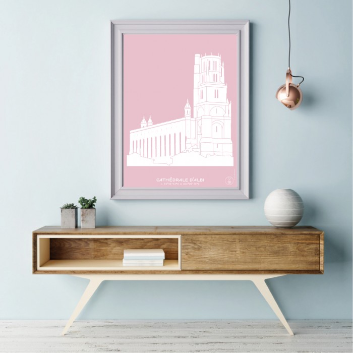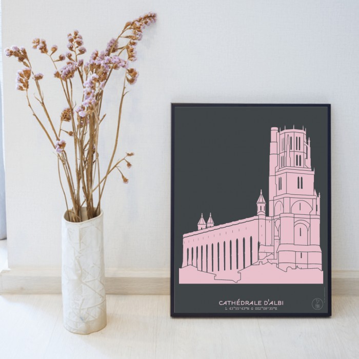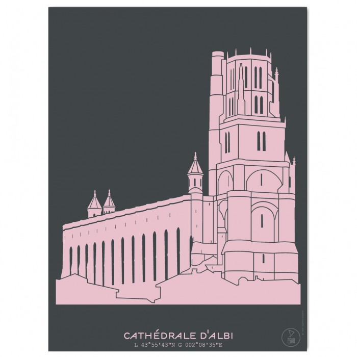 Affiche de la Cathédrale d'Albi, créée avec le style minimaliste et moderne du Prao Studio. Imprimée à La Rochelle et disponible en trois couleurs.