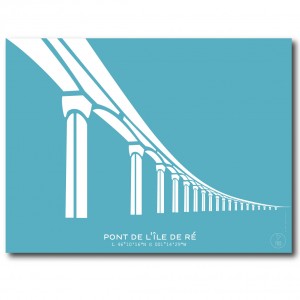 Affiche du pont de l'île de Ré, créée avec le style minimaliste et moderne du Prao Studio. Imprimée à La Rochelle et disponible en deux couleurs.