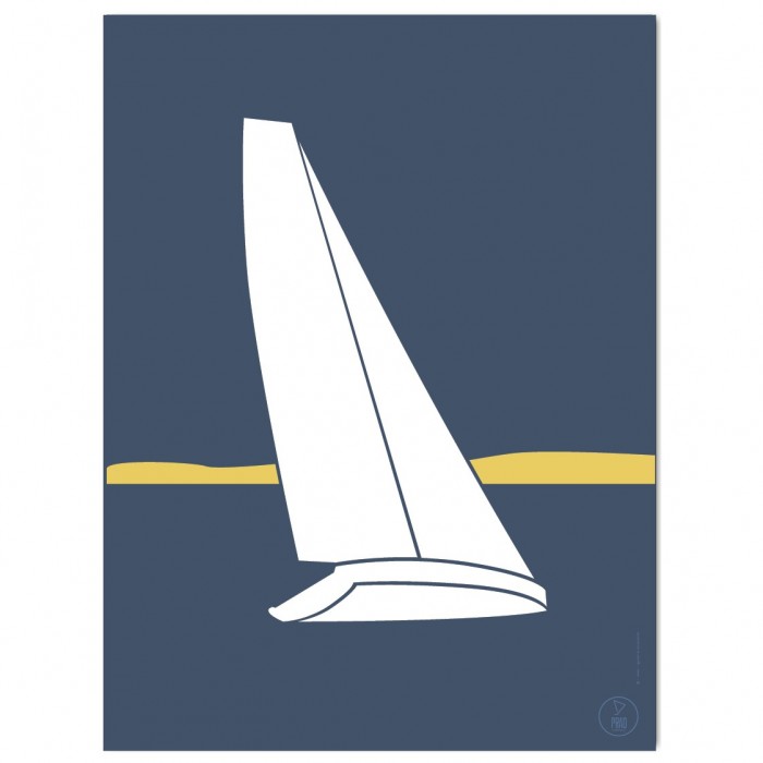 Affiche de voilier créée avec le style minimaliste et moderne du Prao Studio. Imprimée à La Rochelle et disponible en deux couleurs.