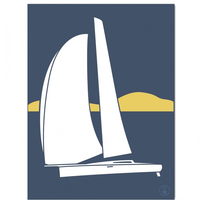 Affiche de voilier créée avec le style minimaliste et moderne du Prao Studio. Imprimée à La Rochelle et disponible en deux couleurs.
